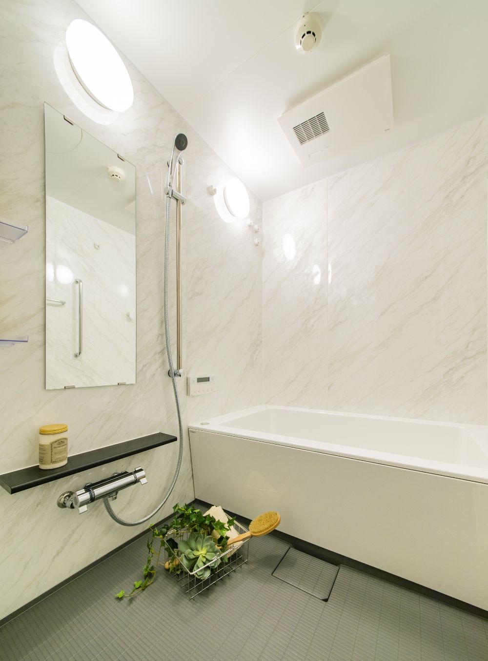 寒い日の予備暖房や換気、雨の日の洗濯に便利な浴室暖房乾燥機を標準装備しています。