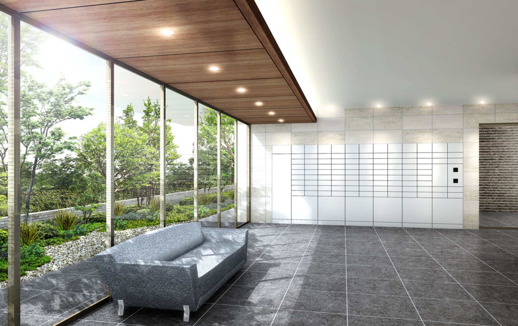 従来の宅配ボックス・メールボックスに比べ、マンションエントランスの美観を壊さない機能的で美しいデザインが特徴です。