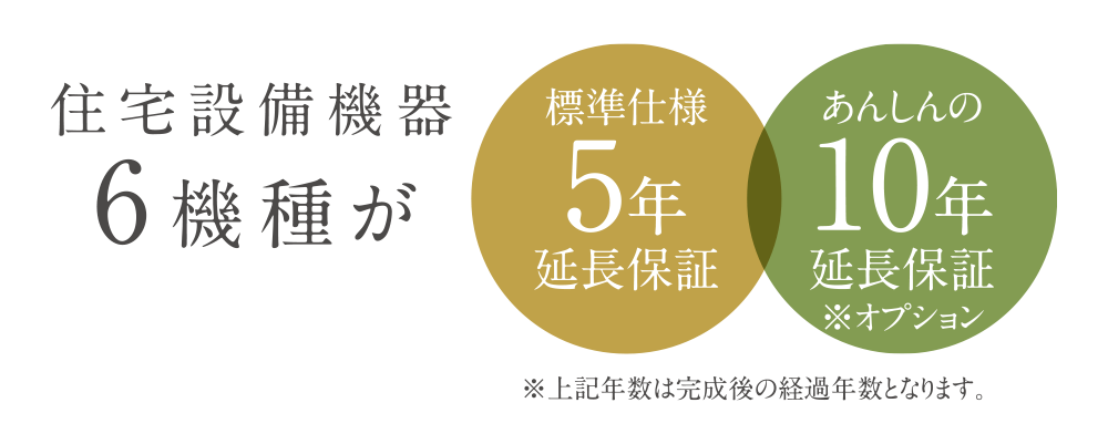 住宅設備機器の5年間無償保証を標準仕様としています。