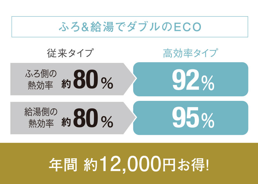 エコジョーズ給湯熱効率95%を達成